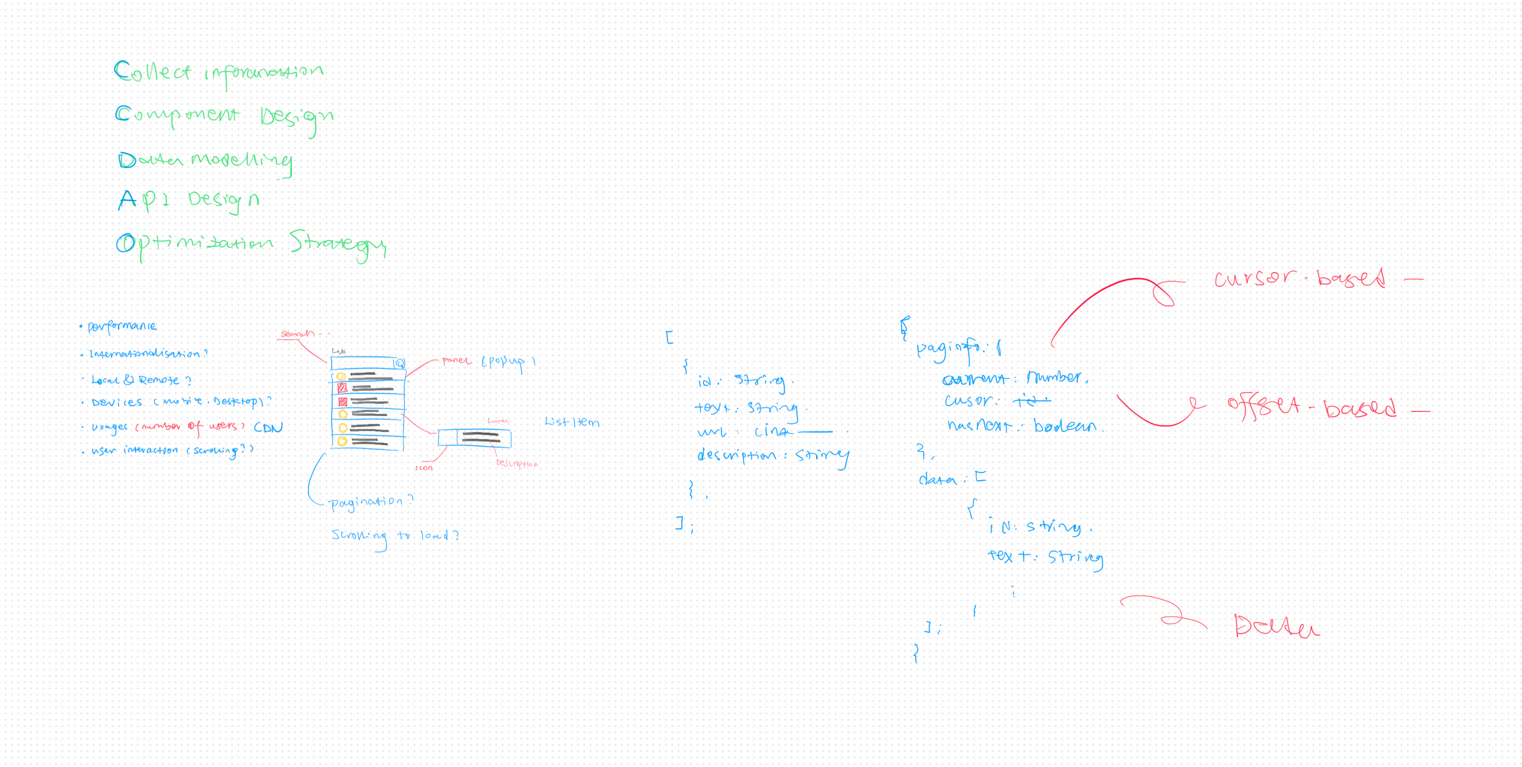This is usually the most familiar part for frontend engineers. You can think visually — sketch what you’ve seen in real-world apps: Google search, Airbnb filters, command palettes.